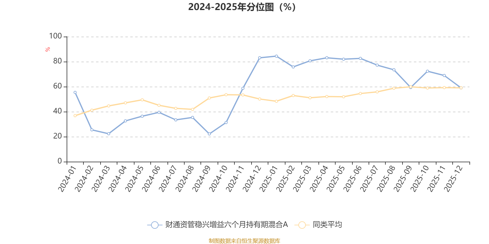 通过所选区间该基金净值增长率分位图,可以观察该基金与同类基金业绩比较情况。图为坐标原点到区间内某时点的净值增长率在同类基金中的分位数。