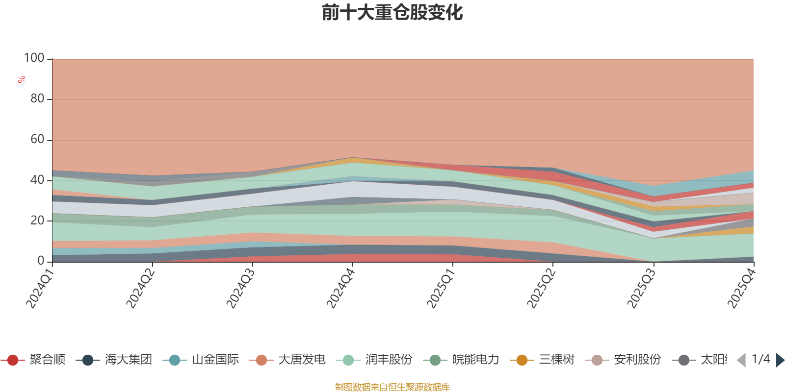 截至2025年四季度末,基金十大重仓股分别是润丰股份、英科医疗、东方雨虹、太阳纸业、兔宝宝、三棵树、江河集团、咸亨国际、海大集团、九号公司。