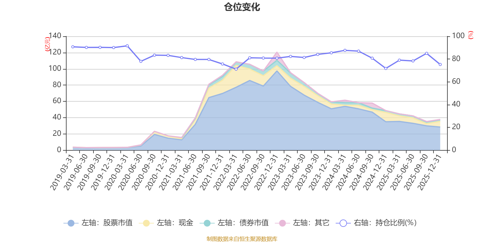 据定期报告数据统计,近三年平均股票仓位为81.53%,同类平均为86.41%。2020年一季度末基金达到91.65%的最高仓位,2022年一季度末最低,为71.16%。