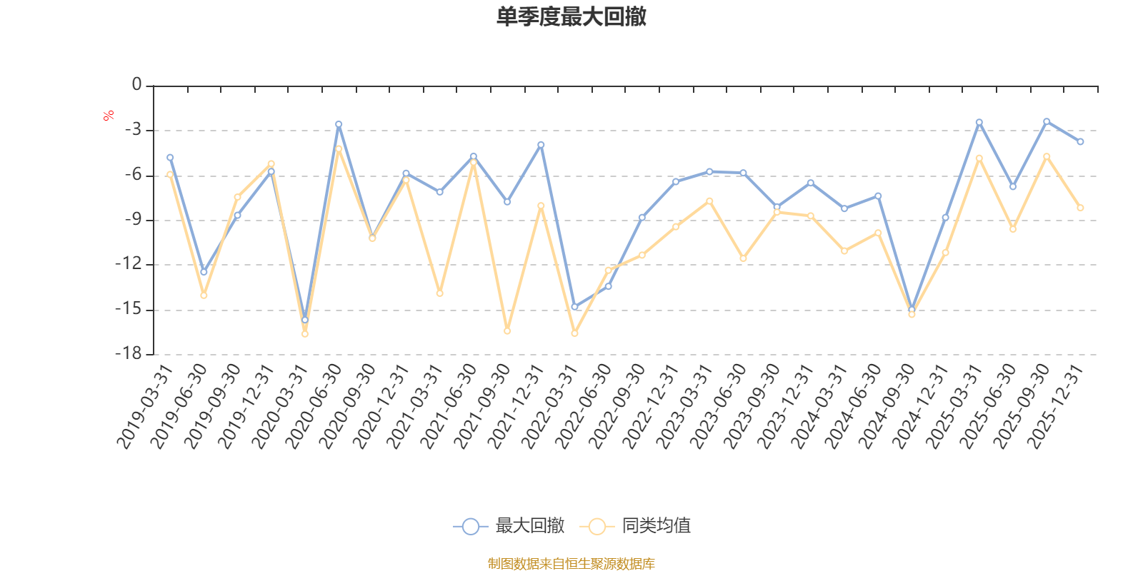 截至1月21日,基金近三年最大回撤为20.13%,同类可比基金排名2/29。单季度最大回撤出现在2020年一季度,为15.69%。