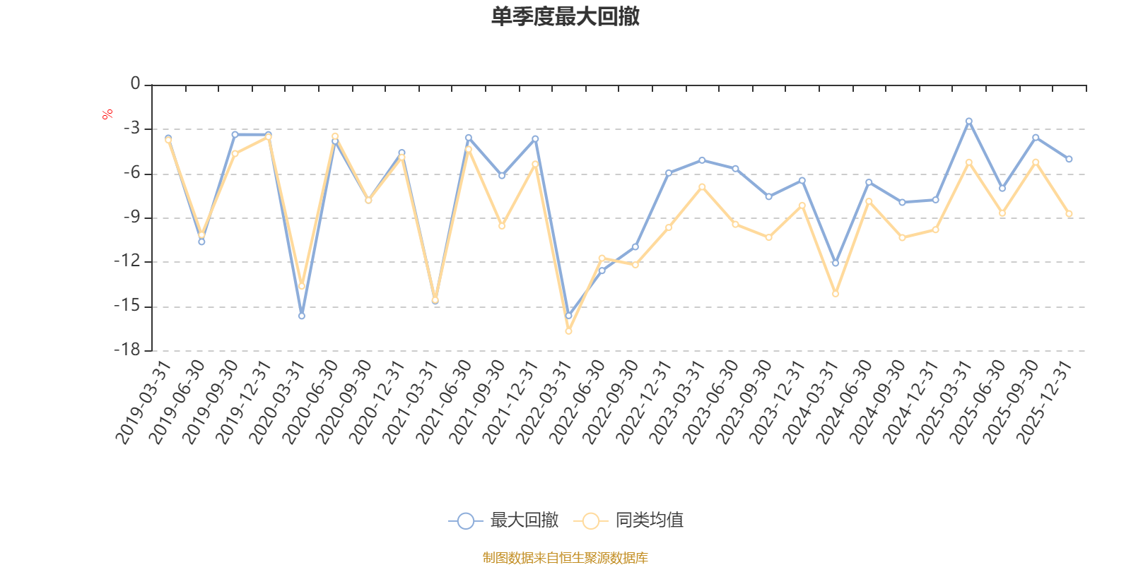 通过所选区间该基金净值增长率分位图,可以观察该基金与同类基金业绩比较情况。图为坐标原点到区间内某时点的净值增长率在同类基金中的分位数。