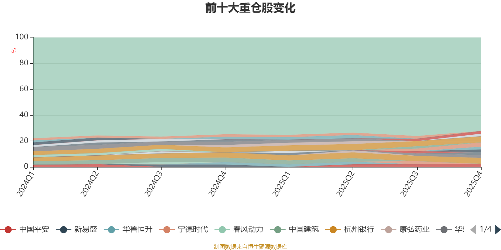 截至2025年四季度末,基金十大重仓股分别是招商银行、杭州银行、三环集团、中国平安、华新建材、华泰证券、天孚通信、亚钾国际、中国太保、中国铝业。