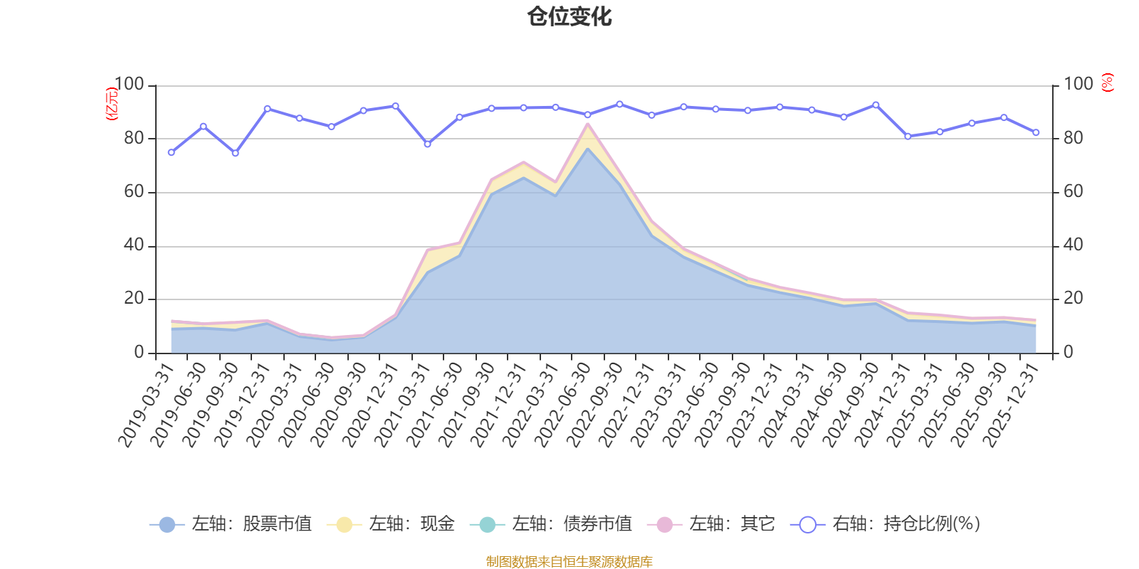 据定期报告数据统计,近三年平均股票仓位为88.11%,同类平均为72.57%。2022年三季度末基金达到92.98%的最高仓位,2019年三季度末最低,为74.7%。