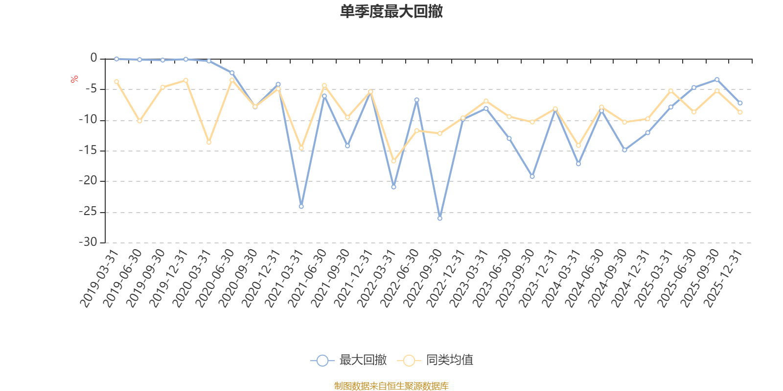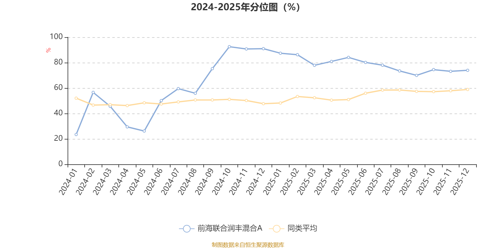 通过所选区间该基金净值增长率分位图,可以观察该基金与同类基金业绩比较情况。图为坐标原点到区间内某时点的净值增长率在同类基金中的分位数。