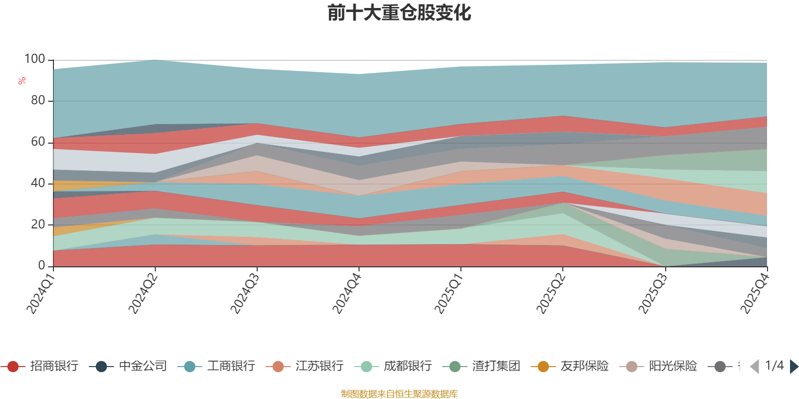 该基金持股集中度较高,近2年前十大重仓股集中度长期超过60%。截至2025年四季度末,基金十大重仓股分别是华泰证券、中国平安、国泰海通、中信证券、兴业证券、申万宏源、中国人民保险集团、中国太保、中金公司、香港交易所。
