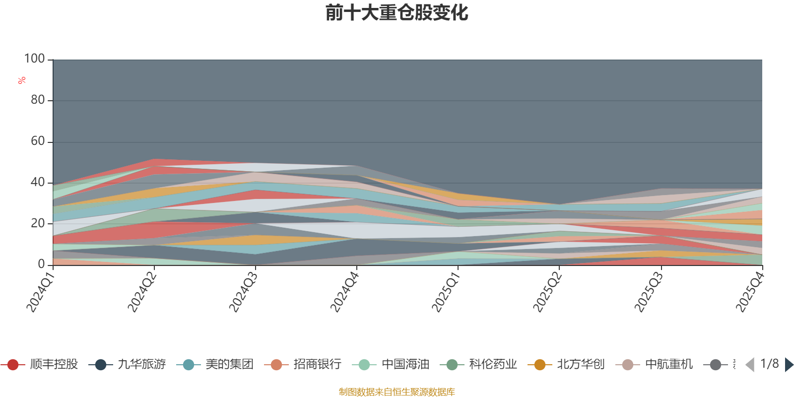 截至2025年四季度末,基金十大重仓股分别是科伦药业、京新药业、瑞丰新材、恺英网络、森麒麟、伊利股份、招商公路、华恒生物、中航沈飞、中国平安。