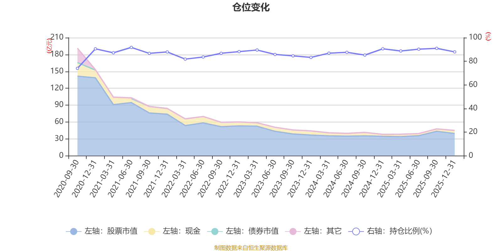 据定期报告数据统计,近三年平均股票仓位为87.61%,同类平均为88.64%。2021年上半年末基金达到91.76%的最高仓位,2020年三季度末最低,为74.02%。