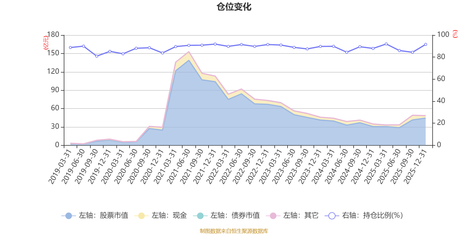 据定期报告数据统计,近三年平均股票仓位为88.55%,同类平均为86.17%。2025年一季度末基金达到91.96%的最高仓位,2019年三季度末最低,为80.88%。