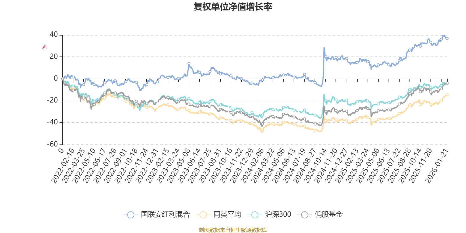 截至1月21日,国联安红利混合近三个月复权单位净值增长率为3.05%,位于同类可比基金533/689;近半年复权单位净值增长率为17.79%,位于同类可比基金453/689;近一年复权单位净值增长率为18.79%,位于同类可比基金574/673;近三年复权单位净值增长率为32.42%,位于同类可比基金103/396。