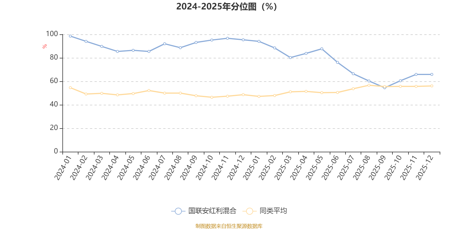 通过所选区间该基金净值增长率分位图,可以观察该基金与同类基金业绩比较情况。图为坐标原点到区间内某时点的净值增长率在同类基金中的分位数。