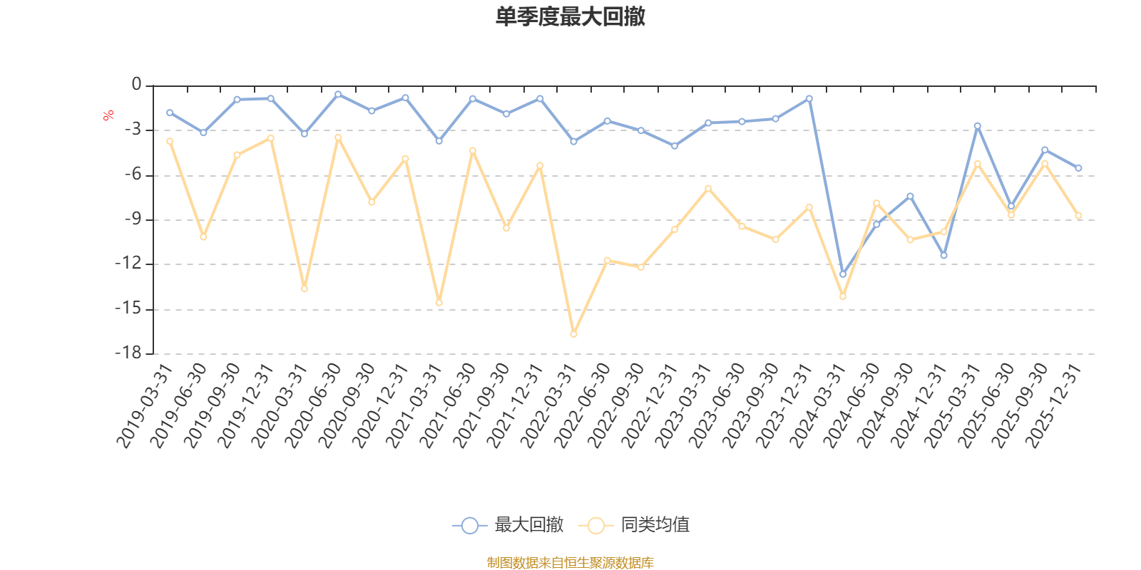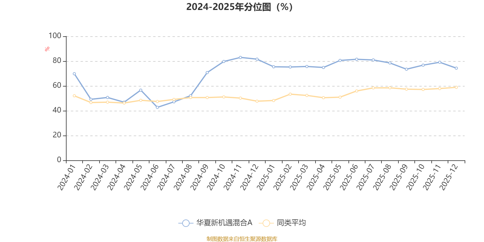通过所选区间该基金净值增长率分位图,可以观察该基金与同类基金业绩比较情况。图为坐标原点到区间内某时点的净值增长率在同类基金中的分位数。