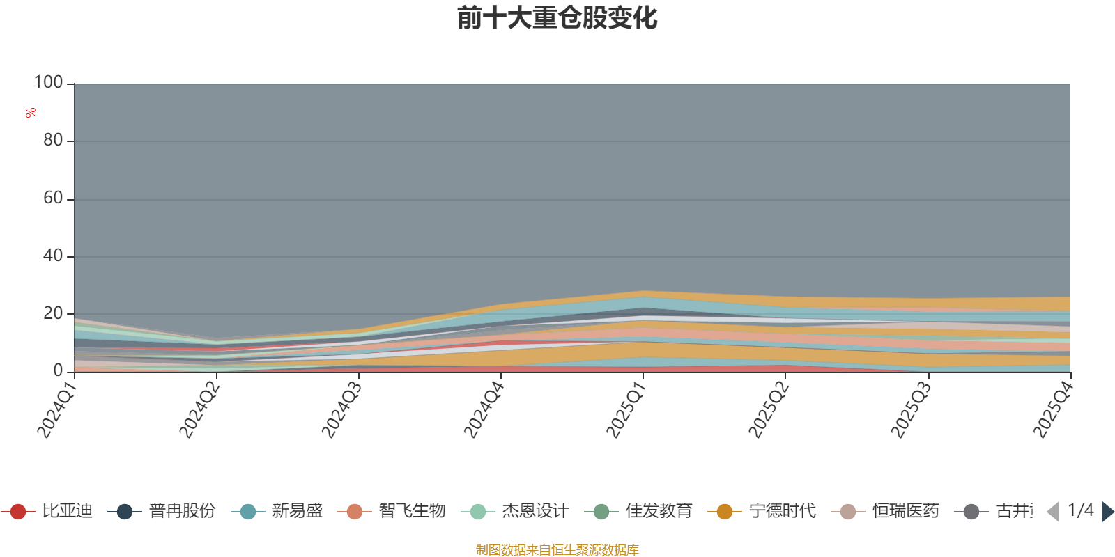 截至2025年四季度末,基金十大重仓股分别是中际旭创、贵州茅台、宁德时代、美的集团、新易盛、格力电器、立讯精密、长江电力、星德胜、牧原股份。