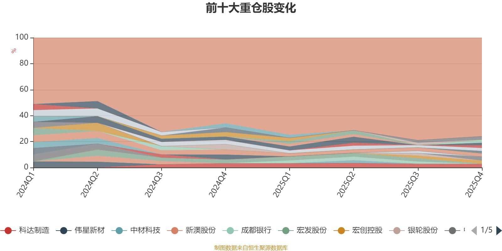 截至2025年四季度末,基金十大重仓股分别是中国太保、科达制造、宁德时代、立讯精密、宏创控股、中孚实业、儒竞科技、顺丰控股、伟明环保、TCL科技。