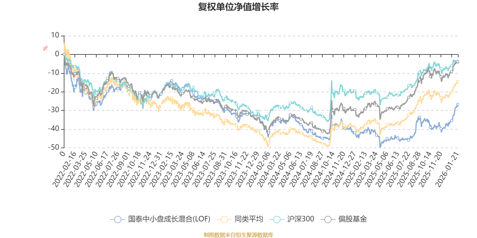 截至1月21日,国泰中小盘成长混合(LOF)近三个月复权单位净值增长率为20.84%,位于同类可比基金24/621;近半年复权单位净值增长率为34.35%,位于同类可比基金175/621;近一年复权单位净值增长率为25.78%,位于同类可比基金469/613;近三年复权单位净值增长率为-12.28%,位于同类可比基金487/535。
