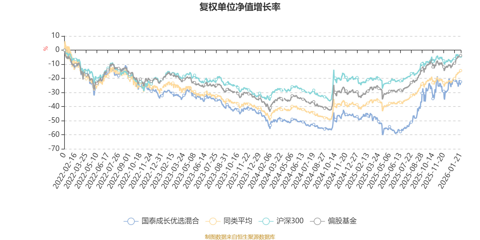 截至1月21日,国泰成长优选混合近三个月复权单位净值增长率为7.26%,位于同类可比基金371/621;近半年复权单位净值增长率为57.37%,位于同类可比基金34/621;近一年复权单位净值增长率为42.15%,位于同类可比基金267/613;近三年复权单位净值增长率为9.07%,位于同类可比基金328/535。