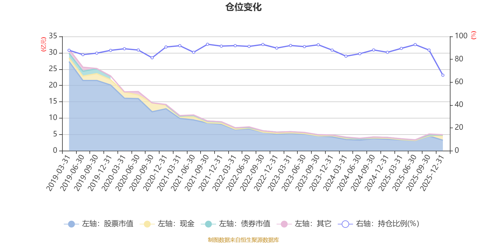 据定期报告数据统计,近三年平均股票仓位为86.88%,同类平均为85.83%。2021年三季度末基金达到93.15%的最高仓位,2025年末最低,为66.11%。