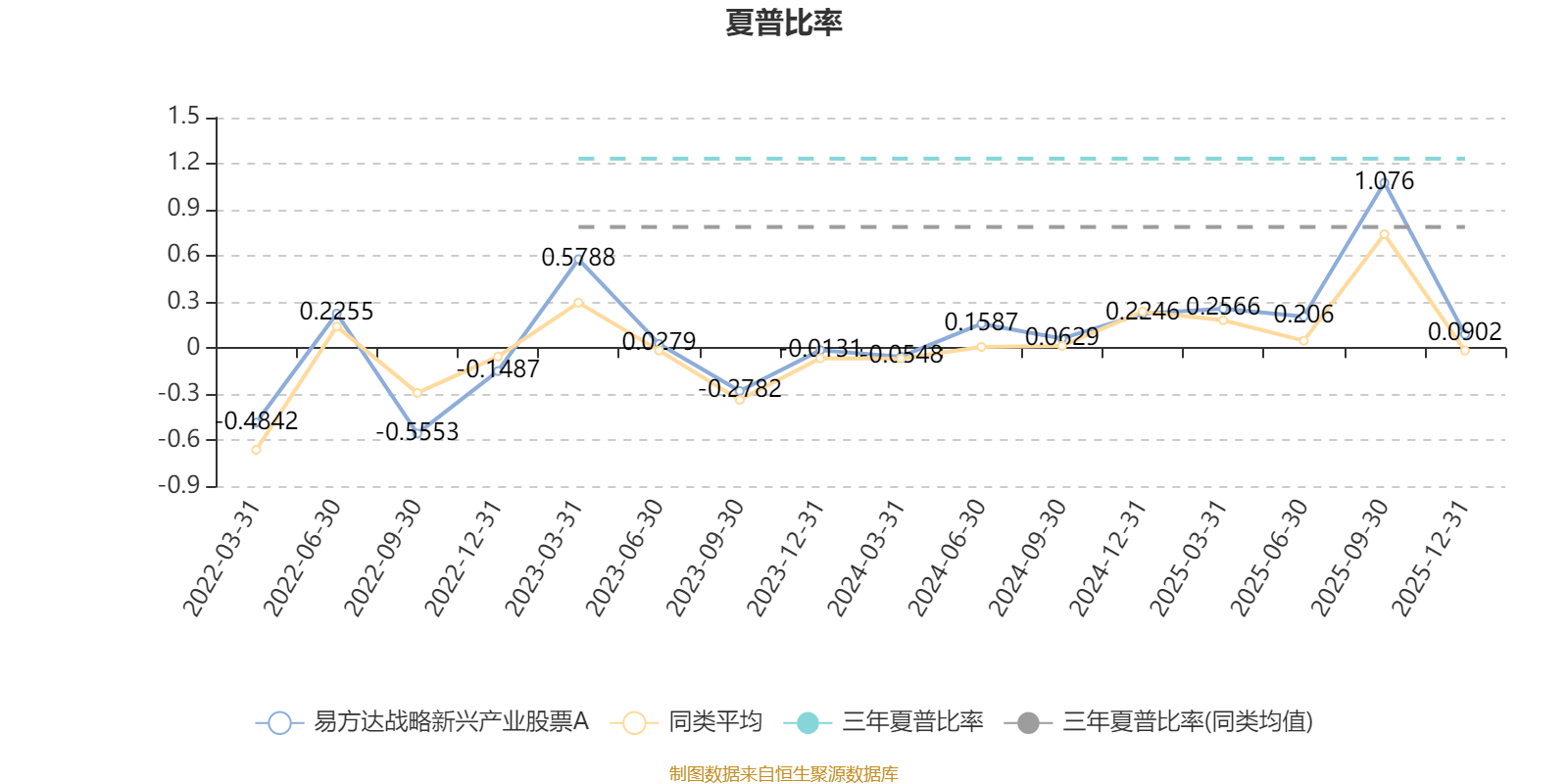 截至12月31日,基金近三年夏普比率为1.2331,位于同类可比基金1/52。