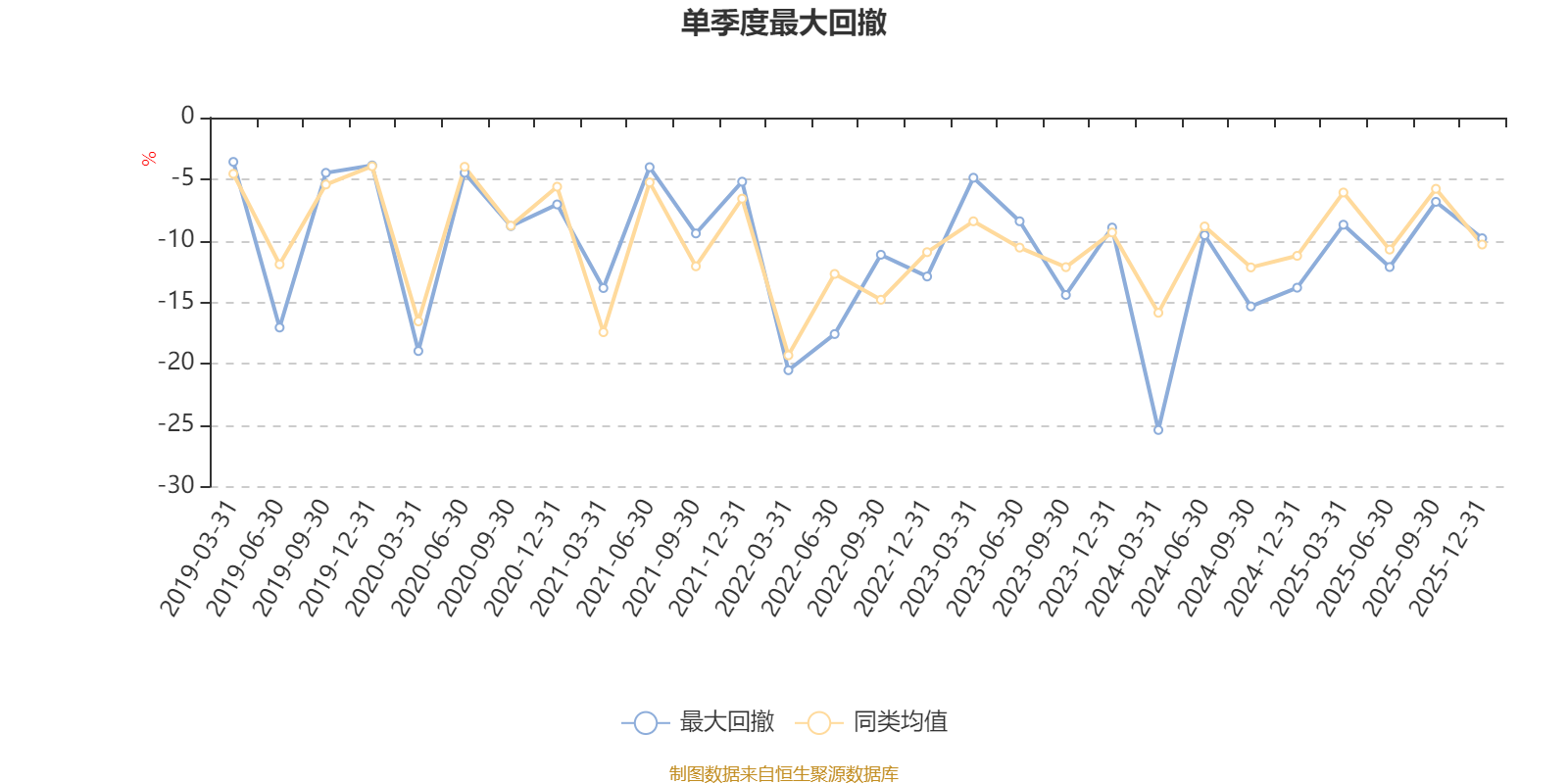 通过所选区间该基金净值增长率分位图,可以观察该基金与同类基金业绩比较情况。图为坐标原点到区间内某时点的净值增长率在同类基金中的分位数。