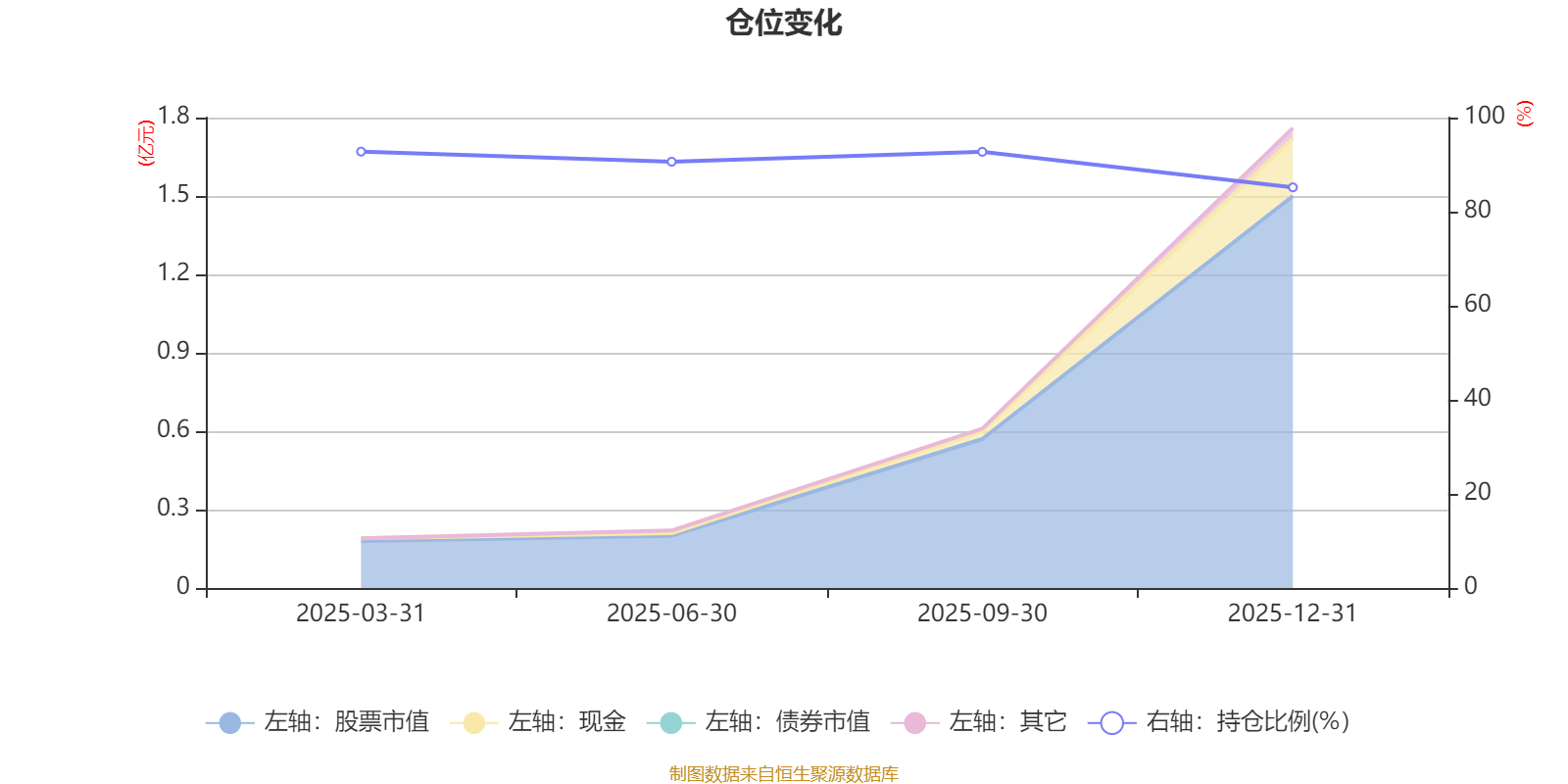 据定期报告数据统计,成立以来平均股票仓位为90.32%,同类平均为88.34%。2025年一季度末基金达到92.77%的最高仓位,2025年末最低,为85.17%。