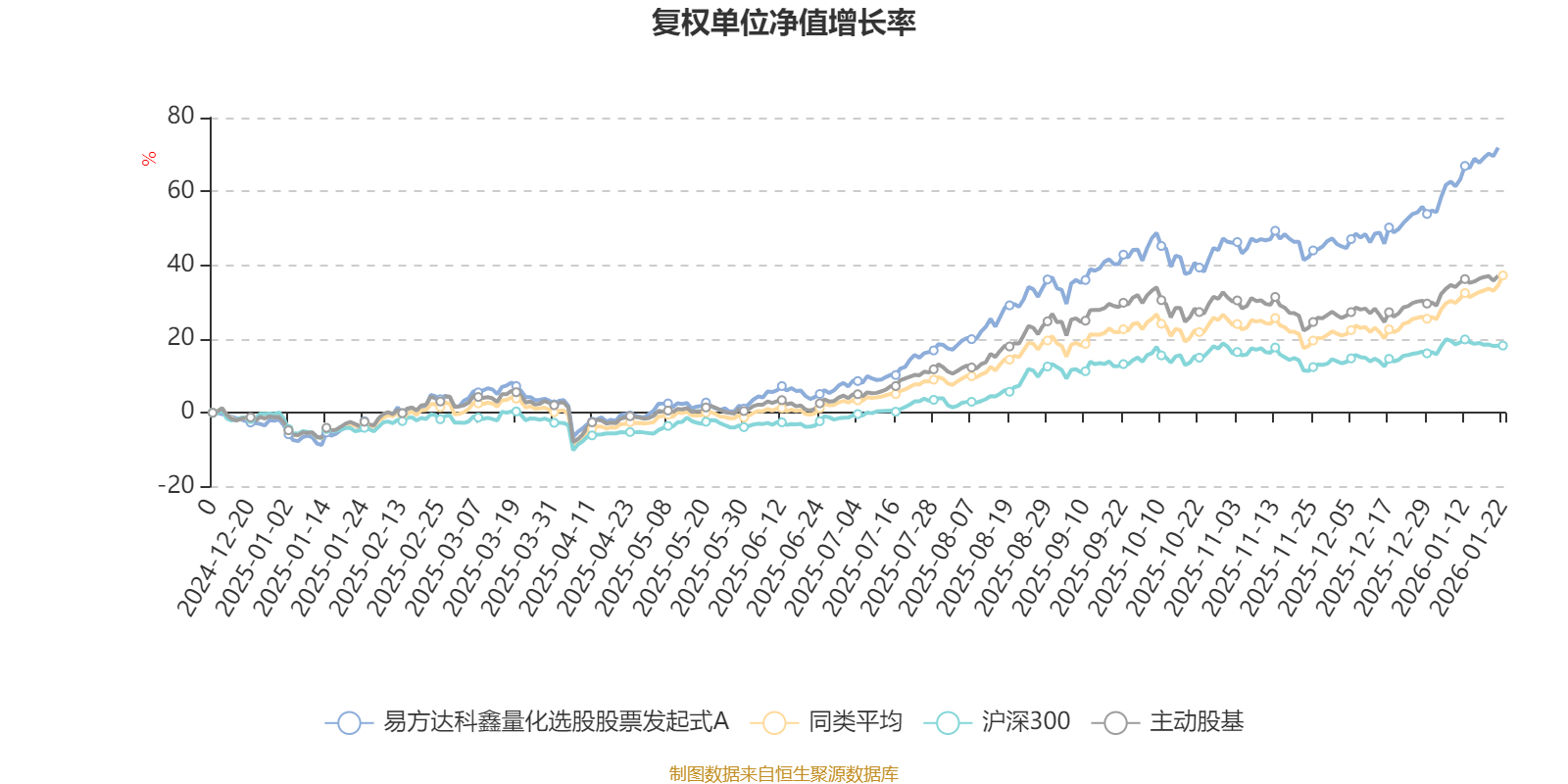截至1月21日,易方达科鑫量化选股股票发起式A近三个月复权单位净值增长率为22.21%,位于同类可比基金9/121;近半年复权单位净值增长率为50.29%,位于同类可比基金14/121;近一年复权单位净值增长率为76.71%,位于同类可比基金8/119。