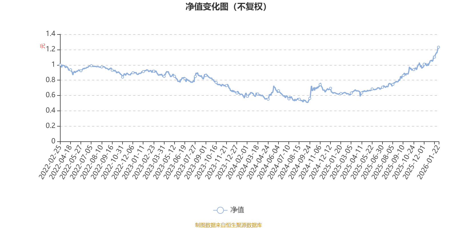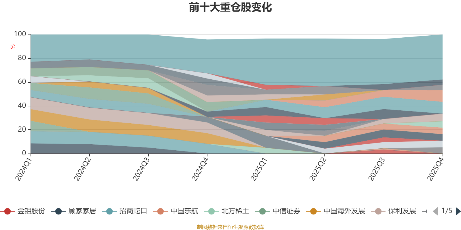该基金持股集中度较高,近2年前十大重仓股集中度长期超过60%。截至2025年四季度末,基金十大重仓股分别是招金矿业、五矿资源、华新建材、中国东方航空股份、藏格矿业、山东黄金、中国南方航空股份、兴业银锡、中国海洋石油、华锡有色。