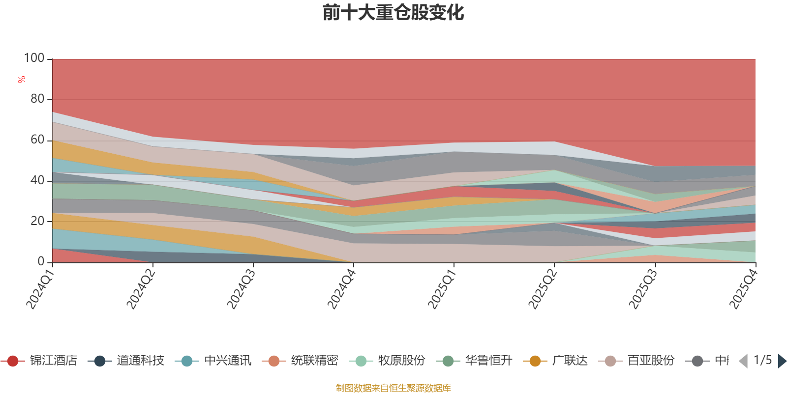 截至2025年四季度末,基金十大重仓股分别是华鲁恒升、九号公司、牧原股份、洛阳钼业、寒武纪、恒力石化、恒立液压、欣旺达、盐津铺子、南芯科技。