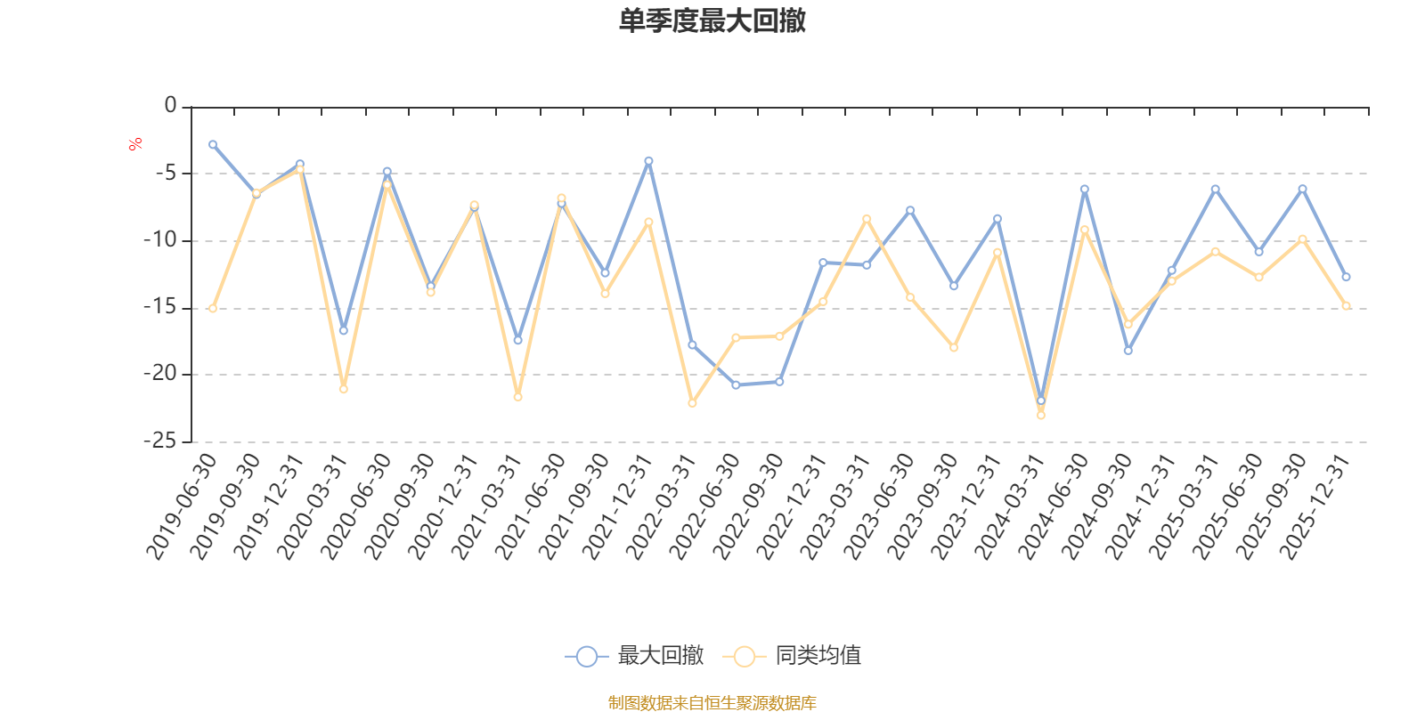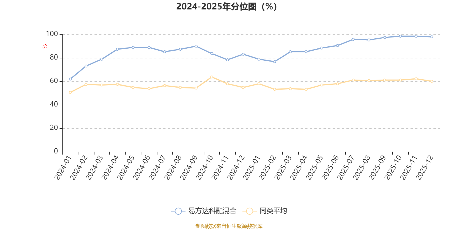 通过所选区间该基金净值增长率分位图,可以观察该基金与同类基金业绩比较情况。图为坐标原点到区间内某时点的净值增长率在同类基金中的分位数。