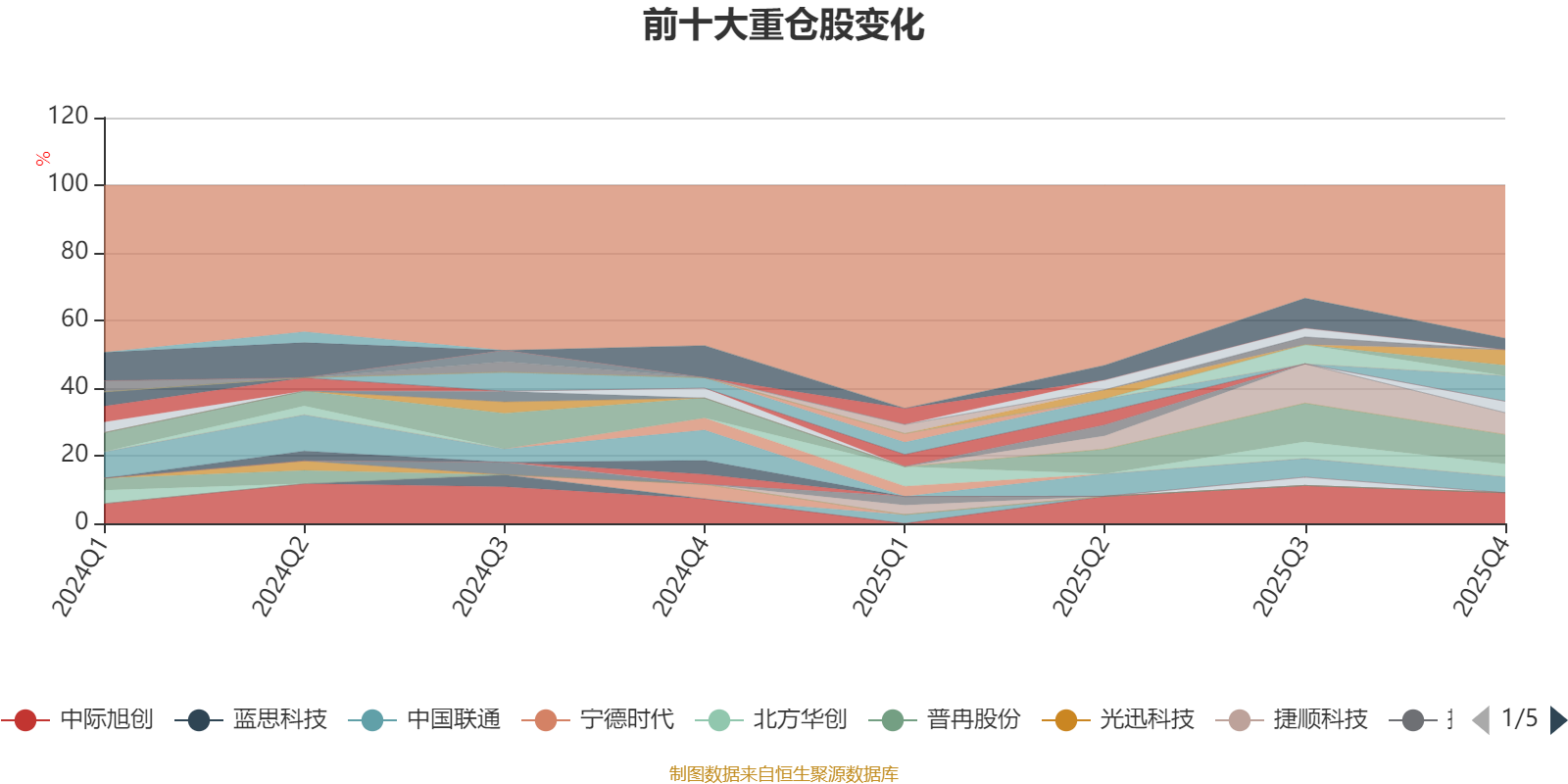 截至2025年四季度末,基金十大重仓股分别是中际旭创、新易盛、阳光电源、工业富联、沪电股份、东山精密、腾讯控股、立讯精密、深南电路、中信证券。