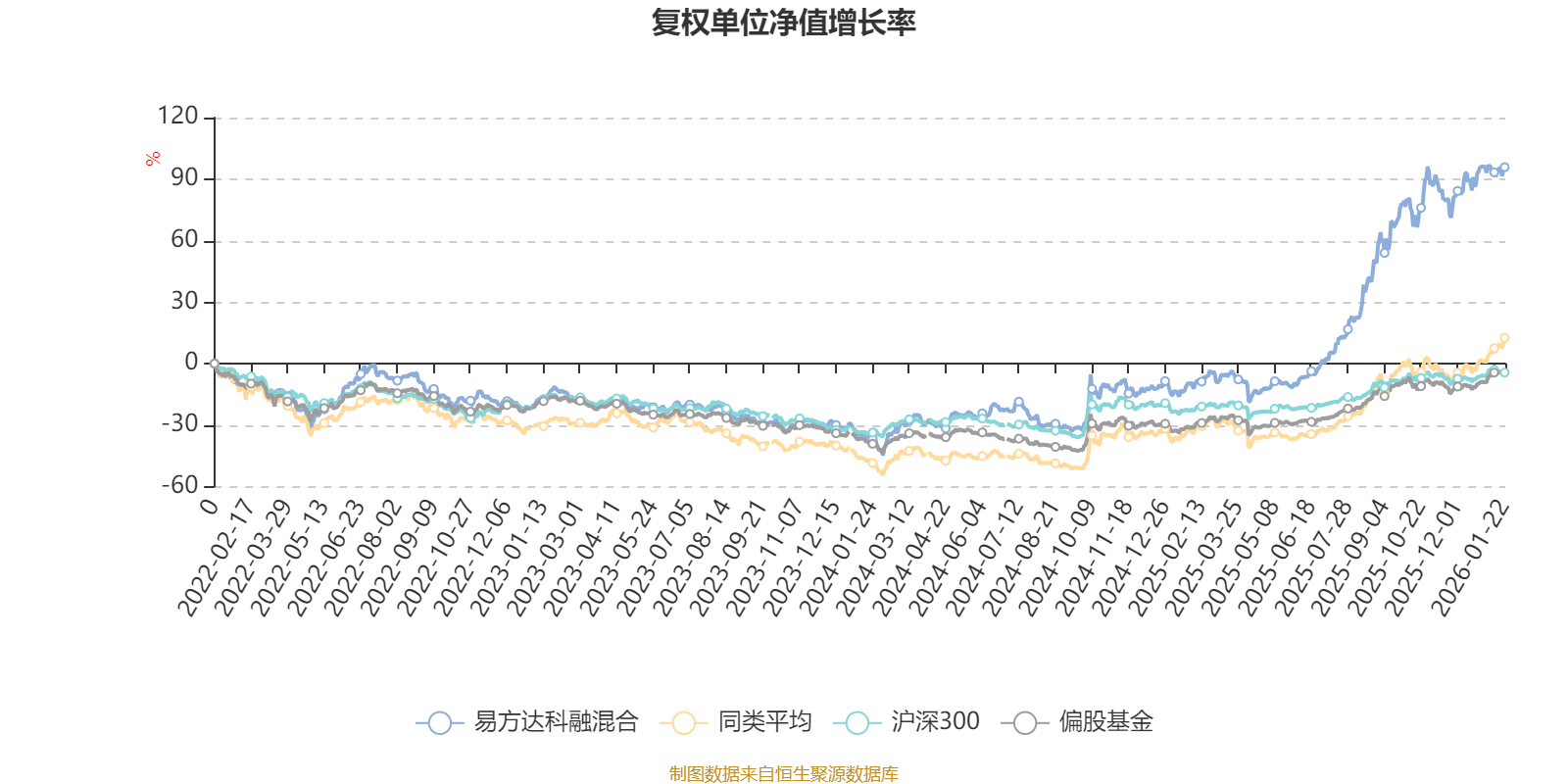 截至1月22日,易方达科融混合近三个月复权单位净值增长率为11.27%,位于同类可比基金155/229;近半年复权单位净值增长率为73.47%,位于同类可比基金34/229;近一年复权单位净值增长率为116.13%,位于同类可比基金9/222;近三年复权单位净值增长率为127.25%,位于同类可比基金7/165。