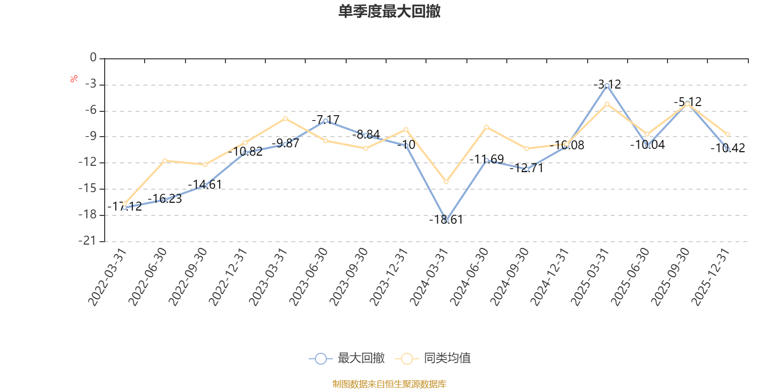 截至1月21日,基金近三年最大回撤为35.13%,同类可比基金排名729/1264。单季度最大回撤出现在2024年一季度,为18.61%。