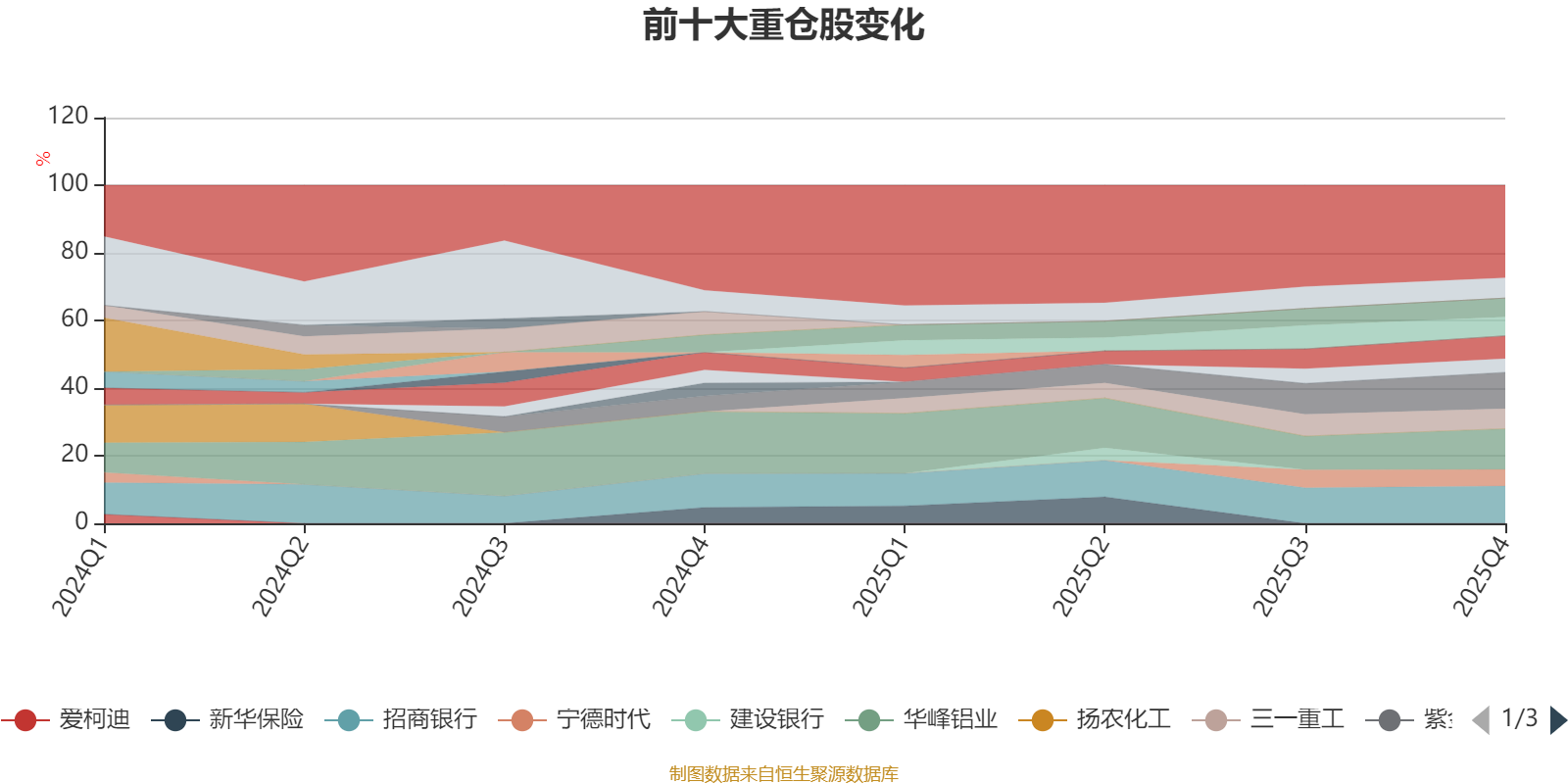 该基金持股集中度较高,近2年前十大重仓股集中度长期超过60%。截至2025年四季度末,基金十大重仓股分别是华峰铝业、招商银行、紫金矿业、恒立液压、星宇股份、三一重工、阿里巴巴-W、中国银行、宁德时代、中谷物流。