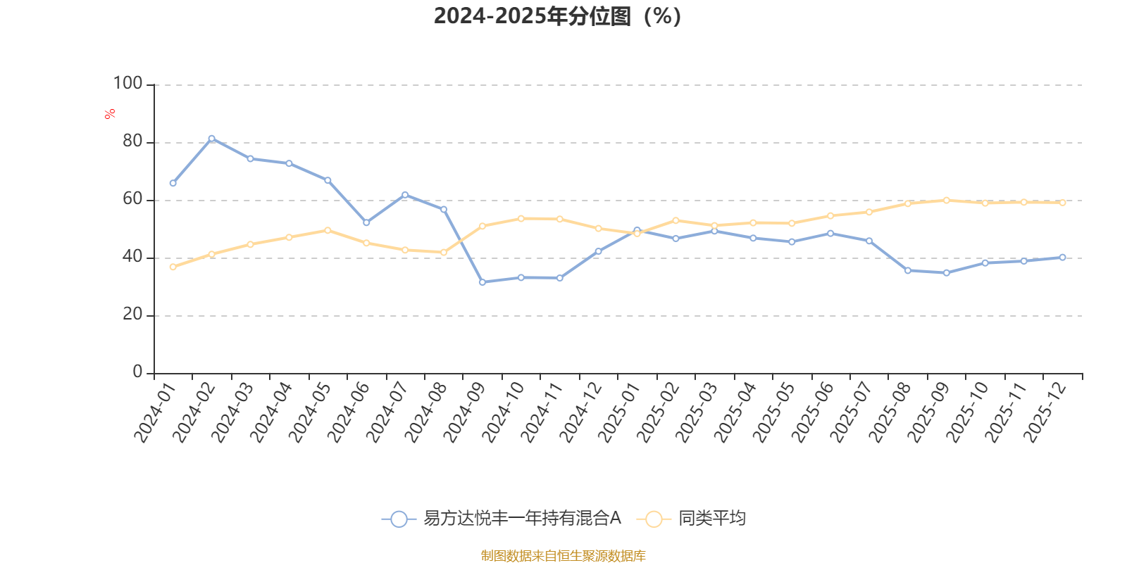 通过所选区间该基金净值增长率分位图,可以观察该基金与同类基金业绩比较情况。图为坐标原点到区间内某时点的净值增长率在同类基金中的分位数。