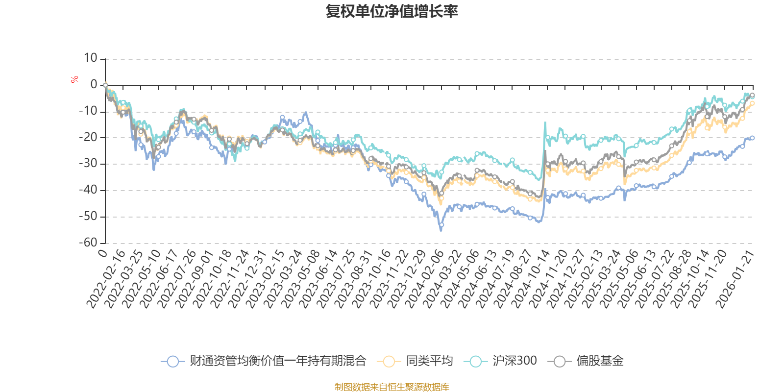 截至1月21日,财通资管均衡价值一年持有期混合近三个月复权单位净值增长率为7.98%,位于同类可比基金93/185;近半年复权单位净值增长率为23.45%,位于同类可比基金98/185;近一年复权单位净值增长率为39.19%,位于同类可比基金91/183;近三年复权单位净值增长率为-4.17%,位于同类可比基金146/176。