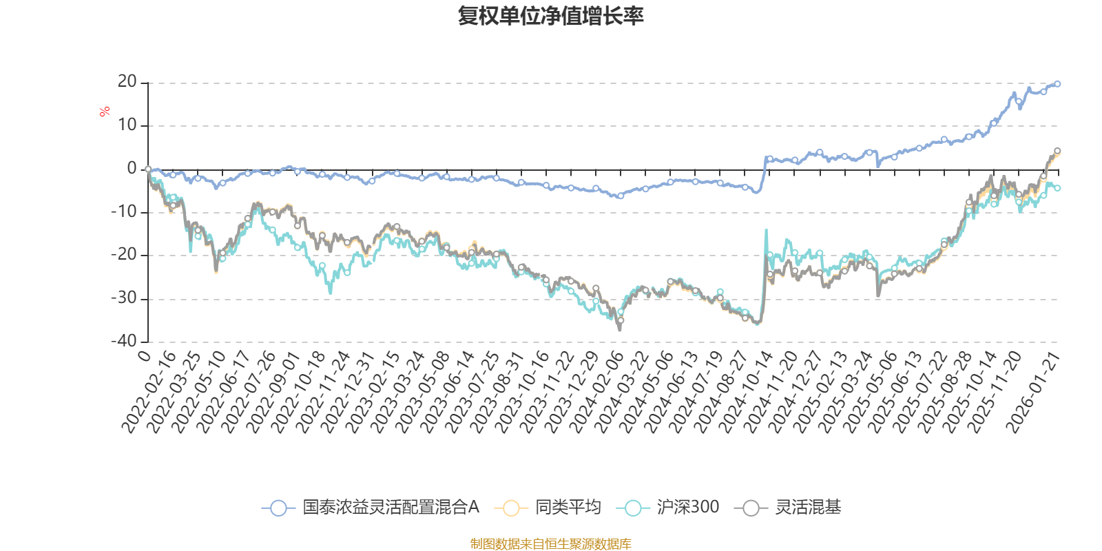 截至1月21日,国泰浓益灵活配置混合A近三个月复权单位净值增长率为7.06%,位于同类可比基金688/1286;近半年复权单位净值增长率为12.32%,位于同类可比基金888/1286;近一年复权单位净值增长率为16.90%,位于同类可比基金968/1286;近三年复权单位净值增长率为20.84%,位于同类可比基金538/1286。