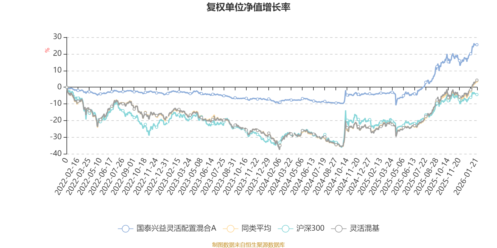 截至1月21日,国泰兴益灵活配置混合A近三个月复权单位净值增长率为7.63%,位于同类可比基金656/1286;近半年复权单位净值增长率为22.86%,位于同类可比基金610/1286;近一年复权单位净值增长率为30.59%,位于同类可比基金657/1286;近三年复权单位净值增长率为28.44%,位于同类可比基金397/1286。