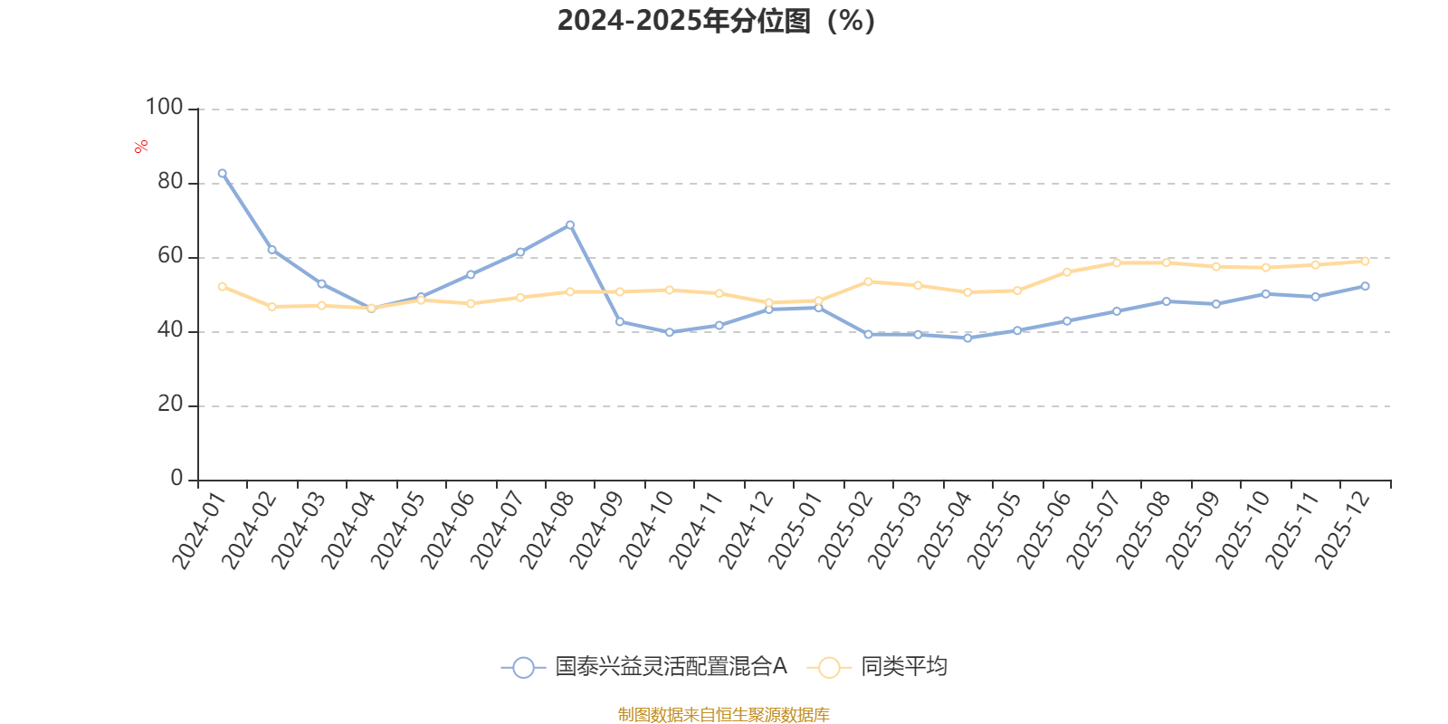通过所选区间该基金净值增长率分位图,可以观察该基金与同类基金业绩比较情况。图为坐标原点到区间内某时点的净值增长率在同类基金中的分位数。
