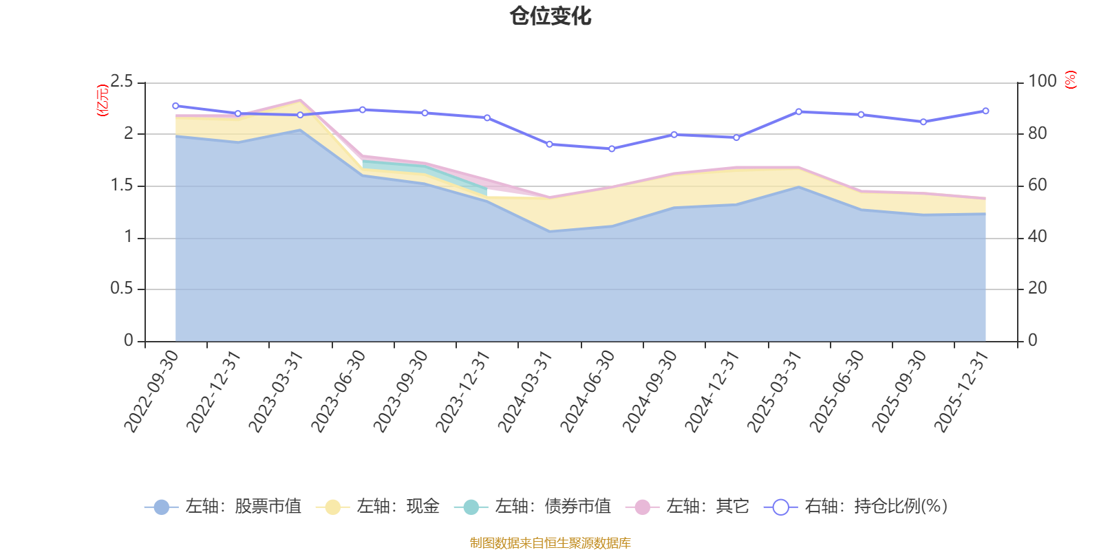 据定期报告数据统计,近三年平均股票仓位为84.24%,同类平均为84.04%。2022年三季度末基金达到91%的最高仓位,2024年上半年末最低,为74.4%。