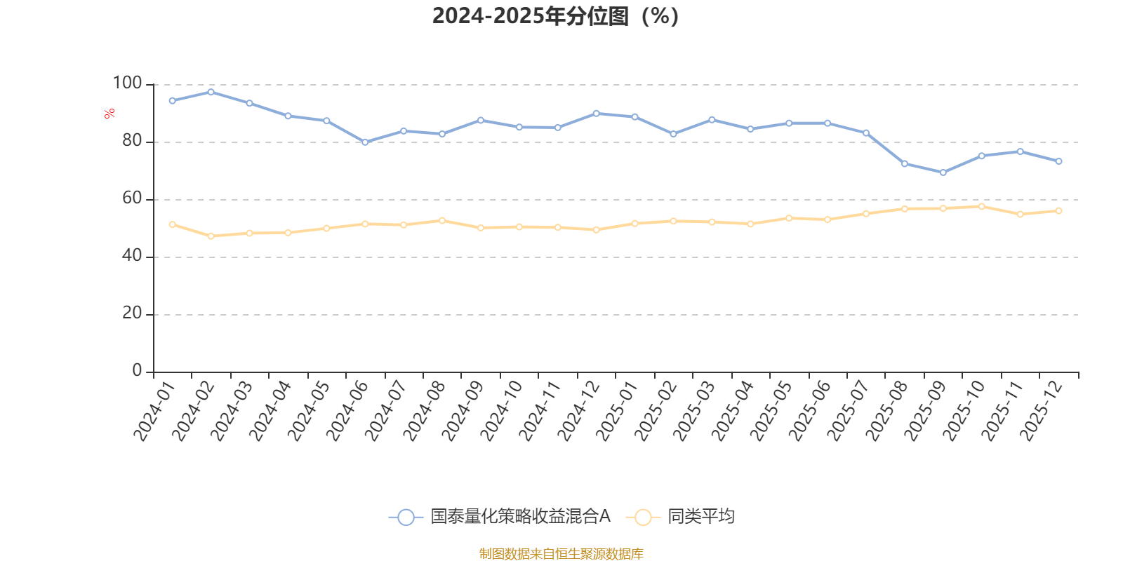 通过所选区间该基金净值增长率分位图,可以观察该基金与同类基金业绩比较情况。图为坐标原点到区间内某时点的净值增长率在同类基金中的分位数。