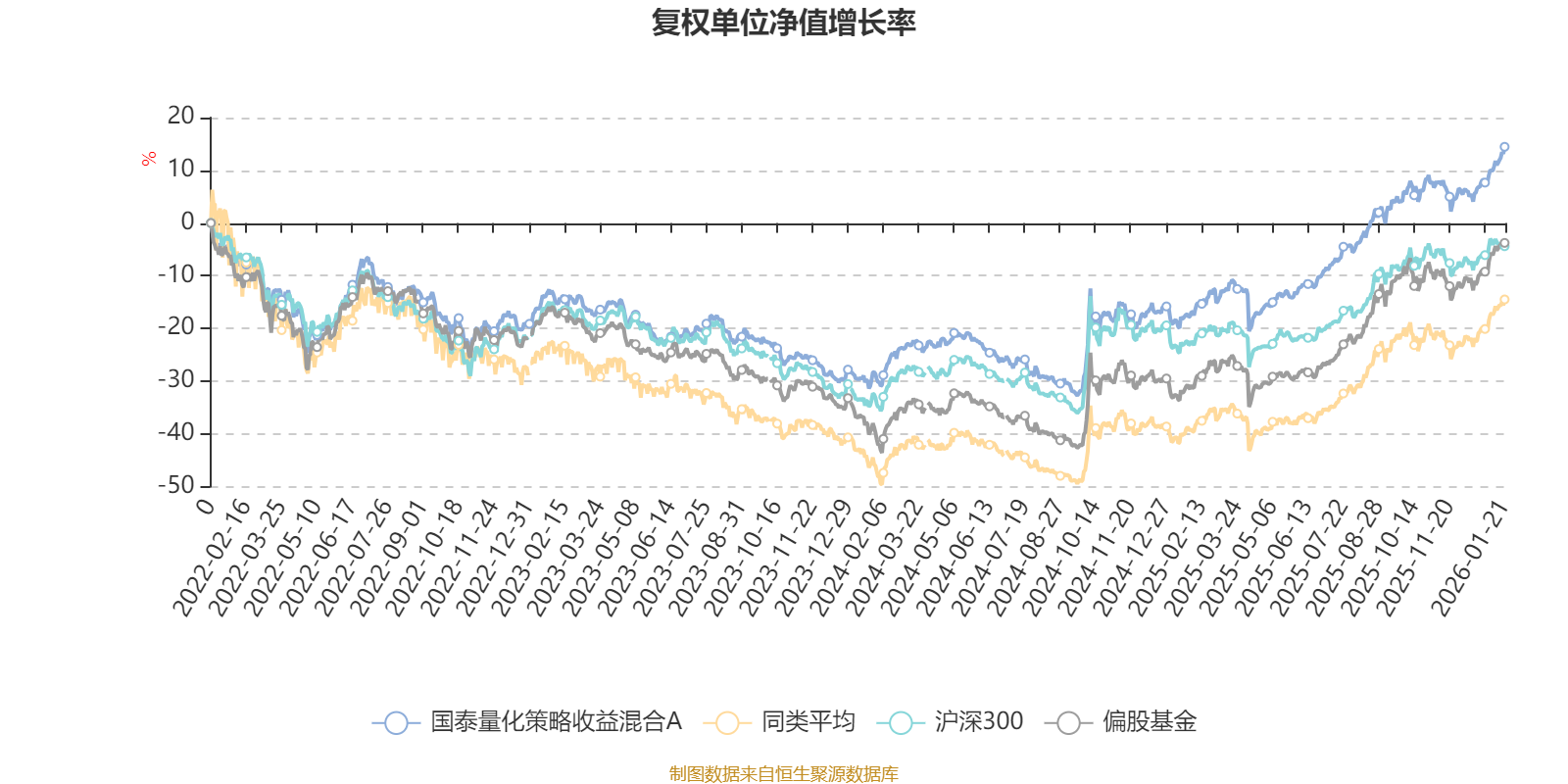 截至1月21日,国泰量化策略收益混合A近三个月复权单位净值增长率为7.63%,位于同类可比基金356/621;近半年复权单位净值增长率为20.93%,位于同类可比基金391/621;近一年复权单位净值增长率为38.42%,位于同类可比基金312/613;近三年复权单位净值增长率为31.74%,位于同类可比基金156/535。