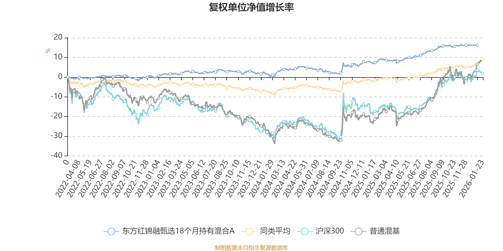 截至1月9日,东方红锦融甄选18个月持有混合A近三个月复权单位净值增长率为-0.09%,位于同类可比基金608/629;近半年复权单位净值增长率为3.69%,位于同类可比基金386/629;近一年复权单位净值增长率为8.44%,位于同类可比基金289/626;近三年复权单位净值增长率为14.95%,位于同类可比基金192/564。