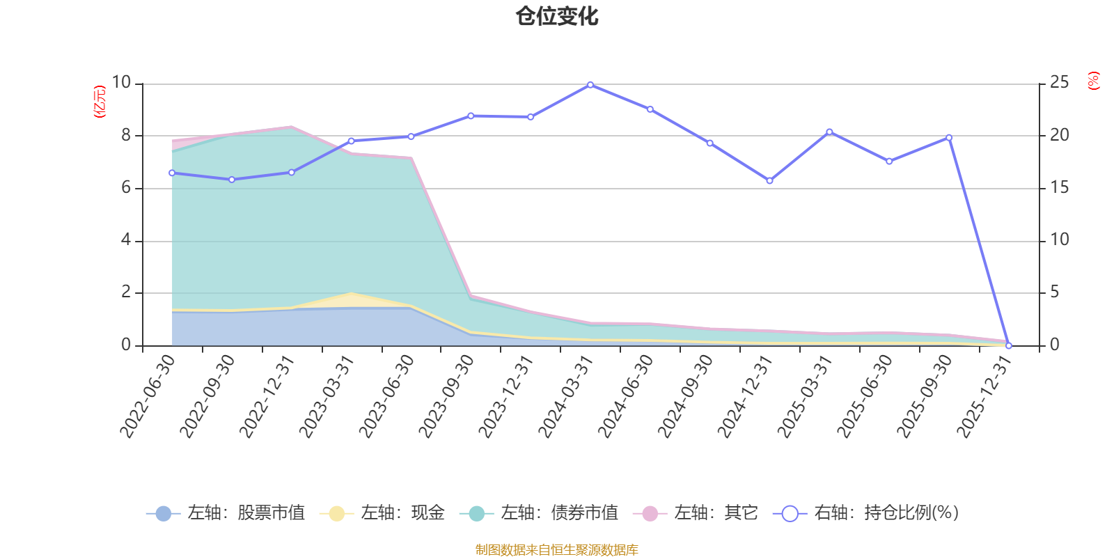 据定期报告数据统计,近三年平均股票仓位为18.63%,同类平均为19.2%。2024年一季度末基金达到24.88%的最高仓位,2024年末最低,为15.74%。