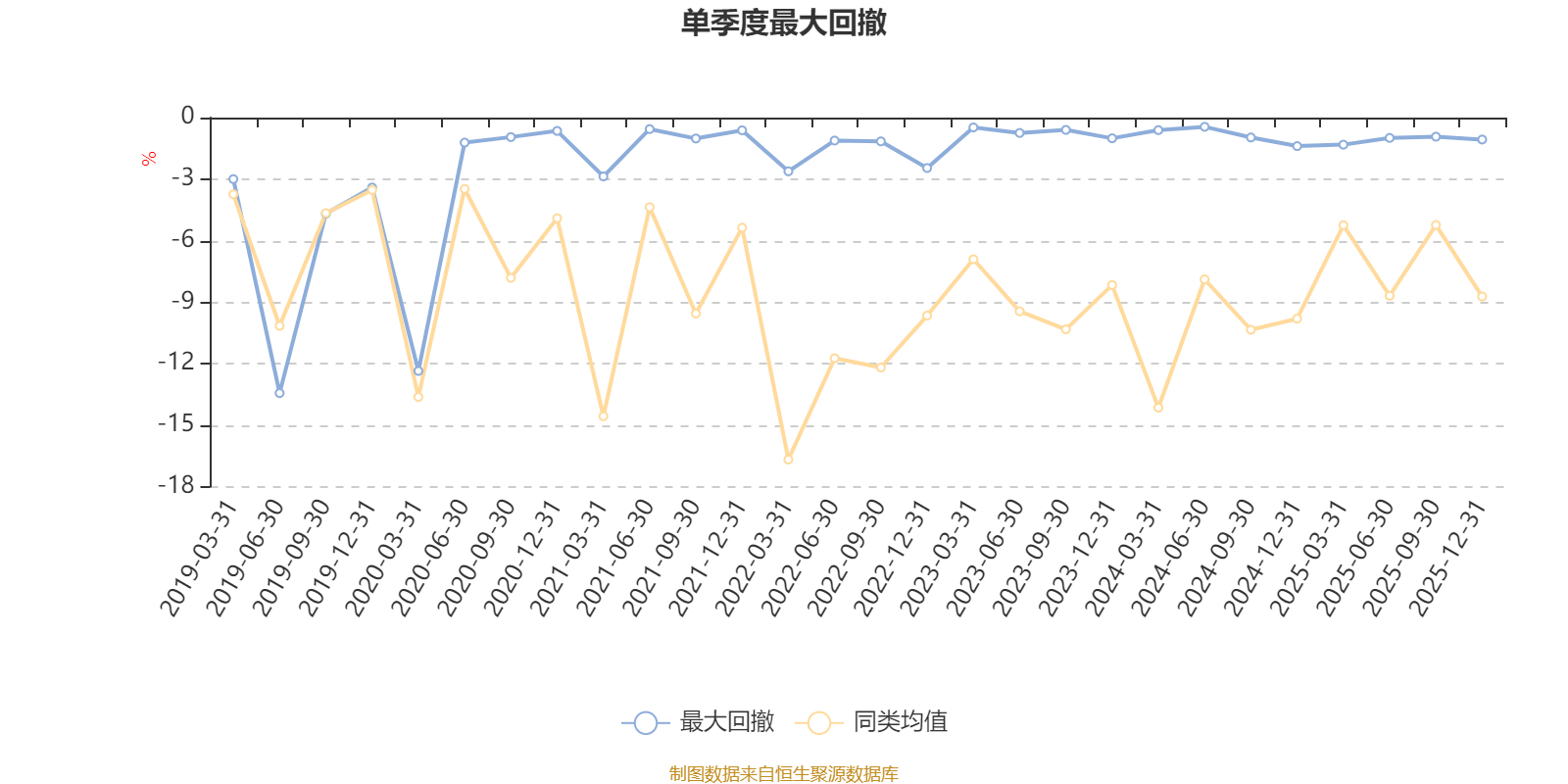 截至1月21日,基金近三年最大回撤为1.51%,同类可比基金排名7/1264。单季度最大回撤出现在2019年二季度,为13.44%。