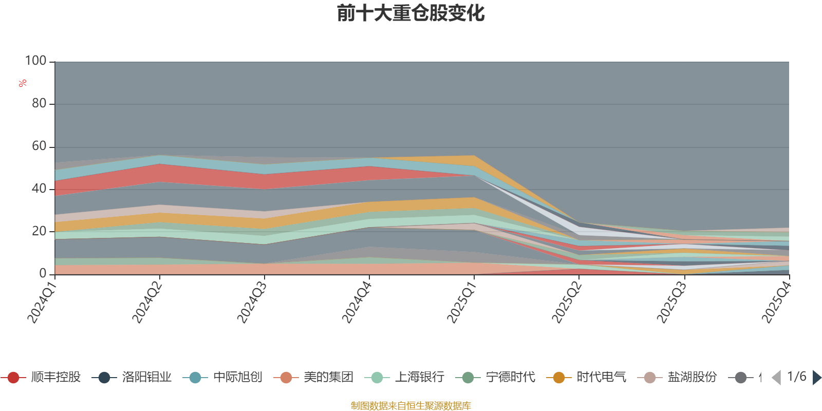 截至2025年四季度末,基金十大重仓股分别是藏格矿业、生益科技、新易盛、深南电路、紫金矿业、洛阳钼业、盐湖股份、中信特钢、中际旭创、巨化股份。