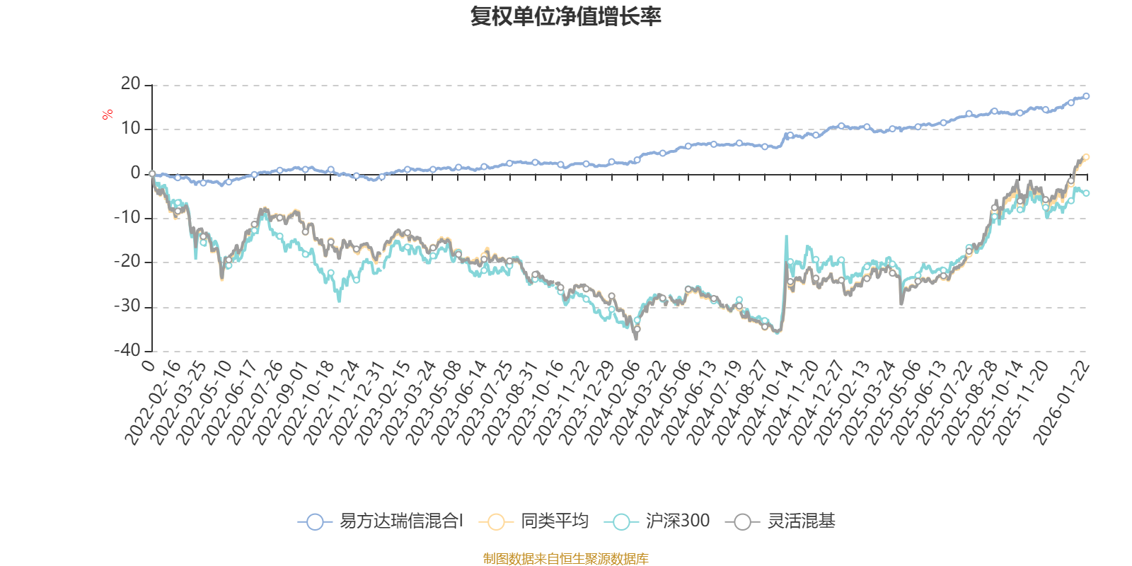 截至1月22日,易方达瑞信混合I近三个月复权单位净值增长率为3.11%,位于同类可比基金967/1286;近半年复权单位净值增长率为3.48%,位于同类可比基金1111/1286;近一年复权单位净值增长率为6.59%,位于同类可比基金1163/1286;近三年复权单位净值增长率为17.08%,位于同类可比基金620/1286。