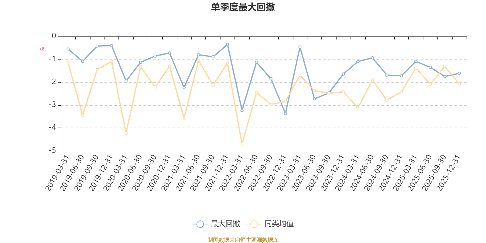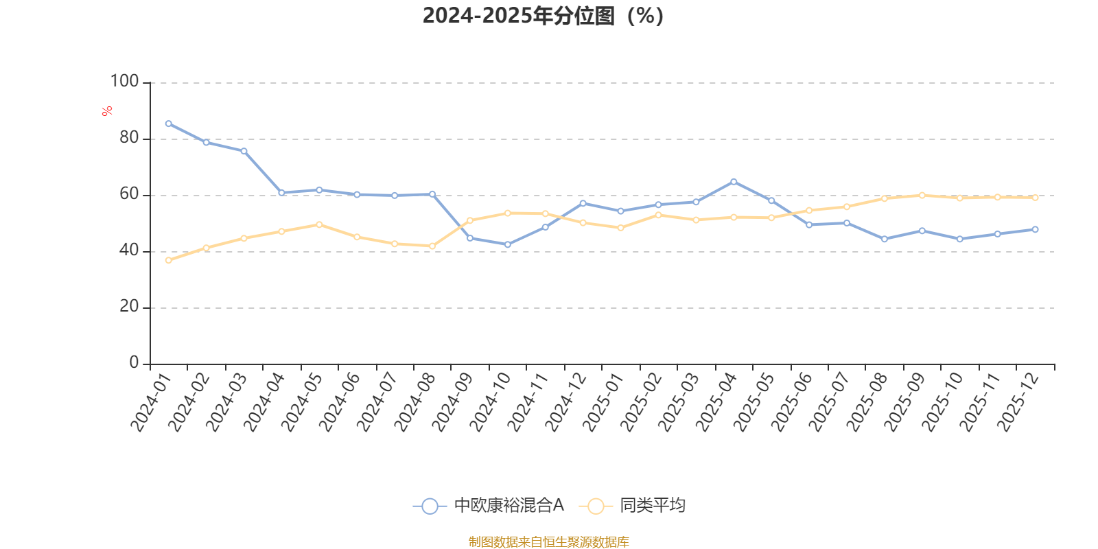 通过所选区间该基金净值增长率分位图,可以观察该基金与同类基金业绩比较情况。图为坐标原点到区间内某时点的净值增长率在同类基金中的分位数。