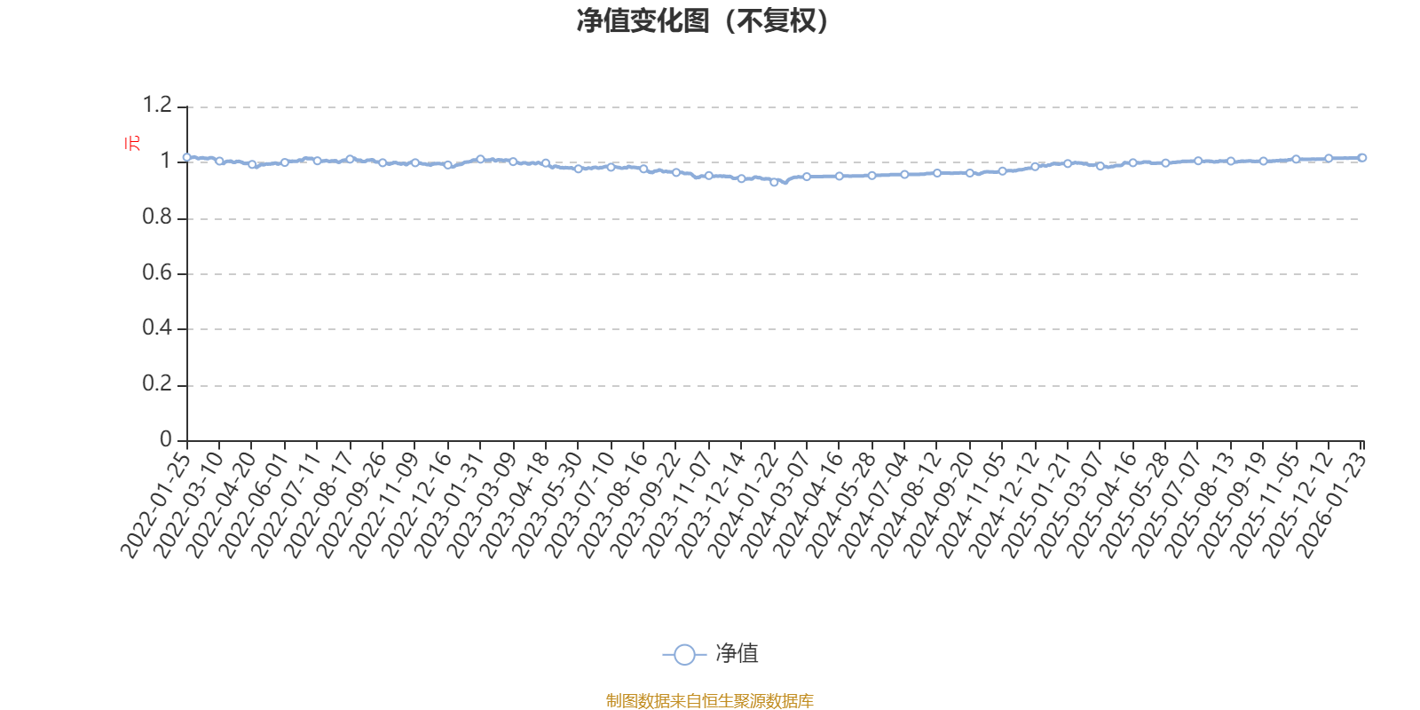 该基金属于偏债混合型基金。截至1月23日,单位净值为1.016元。基金经理是李铭一,目前管理10只基金。其中,截至1月23日,国泰睿元一年定期开放债券发起式近一年复权单位净值增长率最高,达5.85%;国泰惠丰纯债债券A最低,为-4.68%。