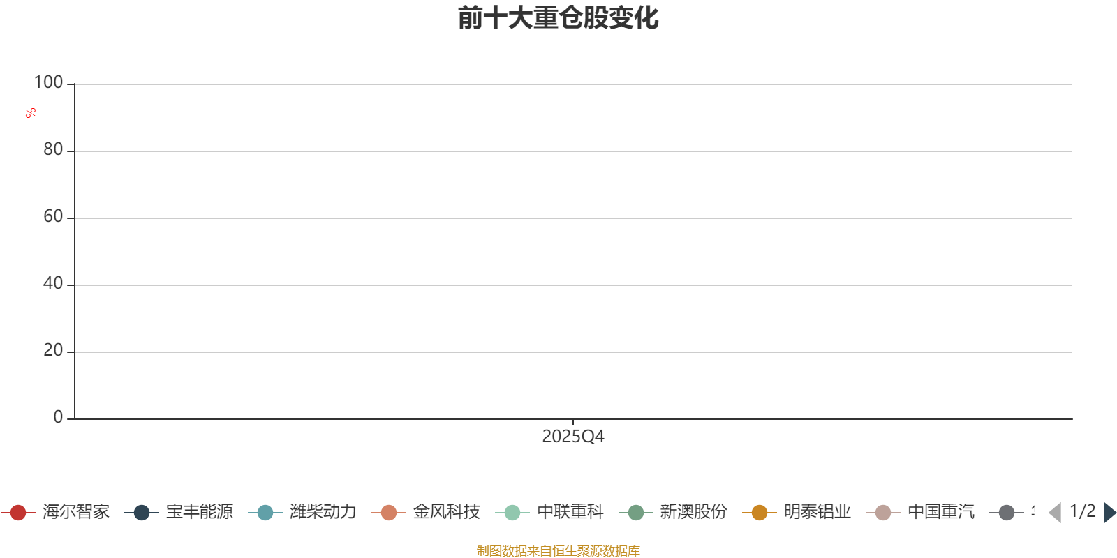 该基金持股集中度较高。截至2025年四季度末,基金十大重仓股分别是新澳股份、中联重科、金风科技、宝丰能源、华域汽车、海尔智家、中国重汽、明泰铝业、华峰铝业、潍柴动力。