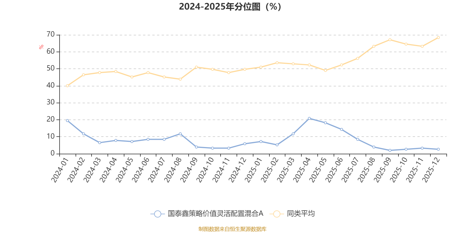 通过所选区间该基金净值增长率分位图,可以观察该基金与同类基金业绩比较情况。图为坐标原点到区间内某时点的净值增长率在同类基金中的分位数。