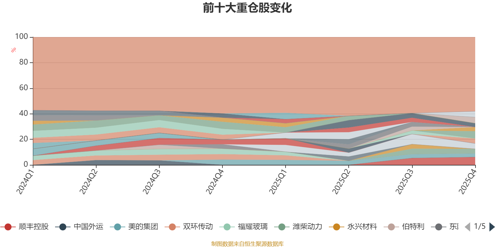 截至2025年四季度末,基金十大重仓股分别是顺丰控股、东兴证券、中国平安、中国太保、药明康德、恒玄科技、潍柴动力、瑞芯微、中信证券、美的集团。