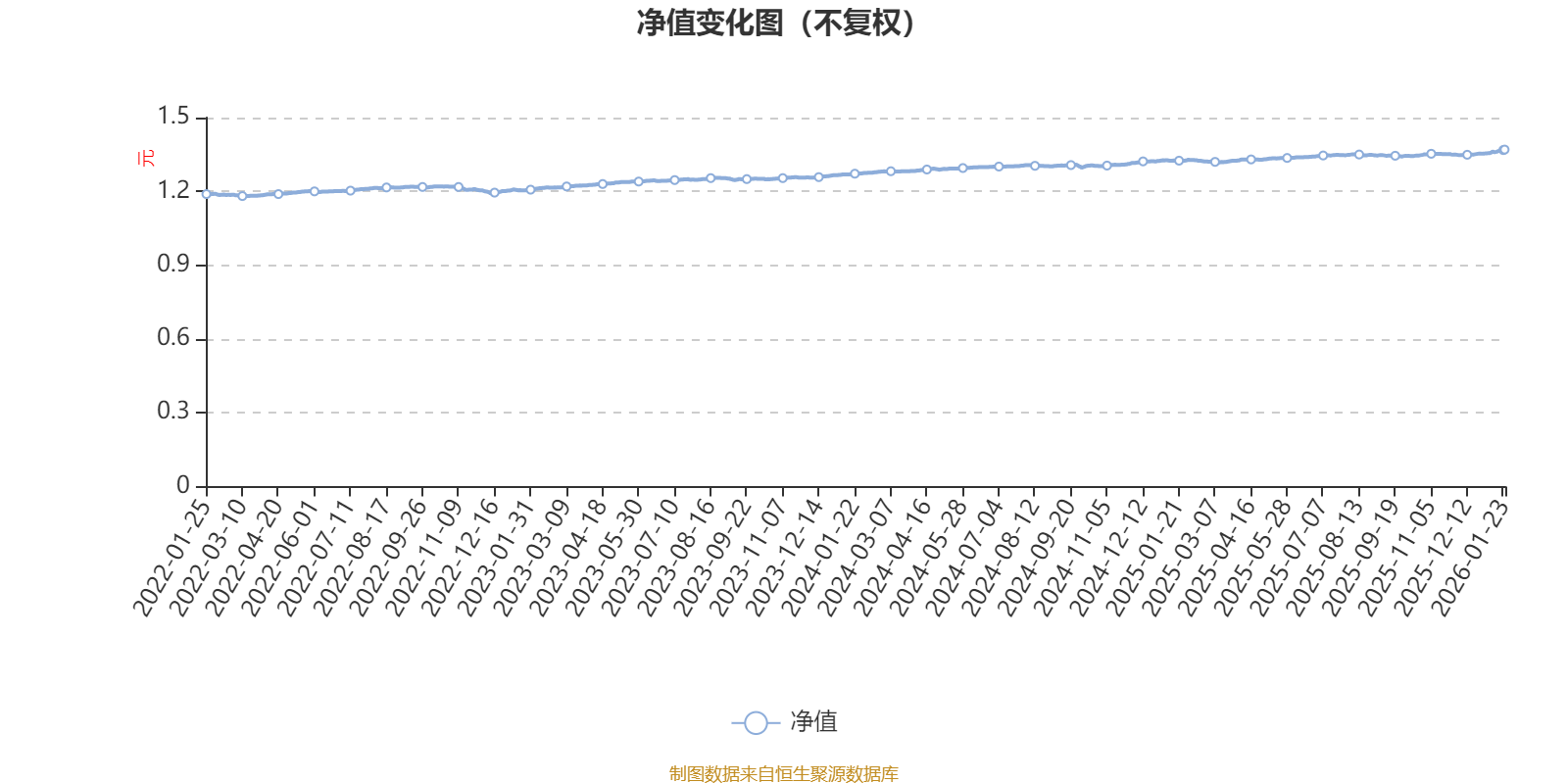 该基金属于偏债混合型基金。截至1月23日,单位净值为1.37元。基金经理是宋倩倩,目前管理的17只基金近一年均为正收益。其中,截至1月23日,广发恒裕一年持有期混合A近一年复权单位净值增长率最高,达10.67%;广发汇宜一年定期开放债券A最低,为0.81%。